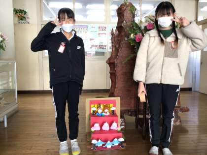5年生の児童が、お雛様を作って「玄関に飾りたい」と言って、飾ってくれました。