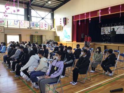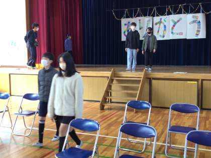 卒業式に挑む心構えを学年主任から聞いた後、入場の練習をしました。