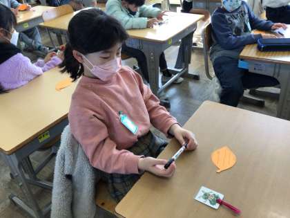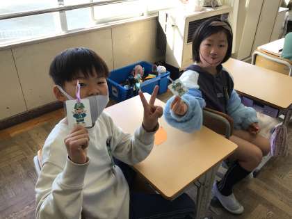 図書ボランティアの方々が、子どもたちに作ってくれた「せんだん君」と「ねぎどん」のしおりを、担任の先生から子どもたちに配りました。たくさん感想を書くと、スペシャルしおりがもらえるそうです。ボランティアさんたちに感謝です。