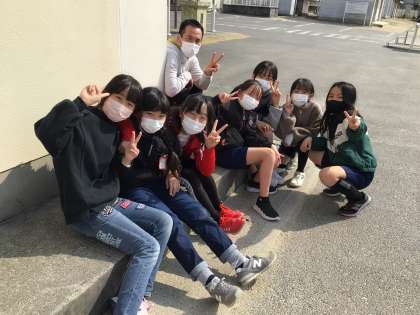 放課に、外で日向ぼっこしている子どもたちもいます。