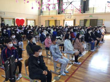 4,5年生も体育館に入場し、6年生を見守りました。