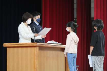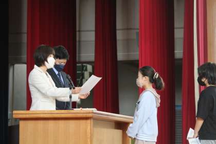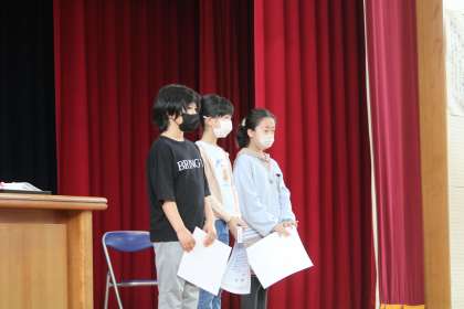 初めに、人権に関する標語コンクール入選の表彰をしました。