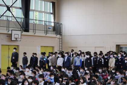 該当学年の児童は、代表者と同じように、フロアに立って礼をします。