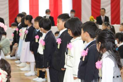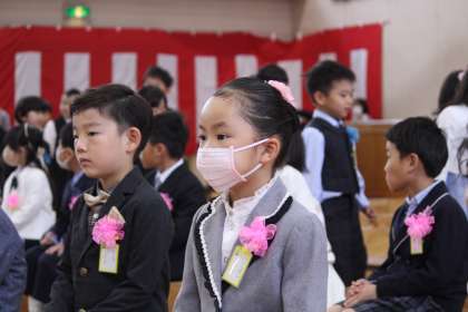 初めは、緊張した顔でしたが、校長の式辞の時に、「4つのお願い」で、「どんなことにもチャレンジしましょう」と伝えると、「はい」と返事をするなど、元気な表情になりました。