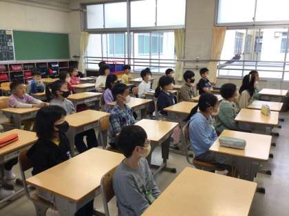 先生のお話を少し緊張した様子で聞いている子もいます。