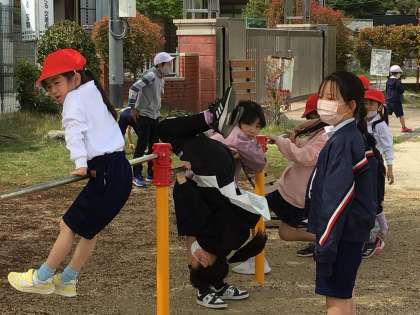 今日はお天気が良く、放課になると大勢の子どもたちが運動場で遊んでいます。