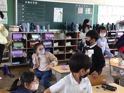 1年生が困っていると、6年生が教えてあげたりお世話をしたりしていました。