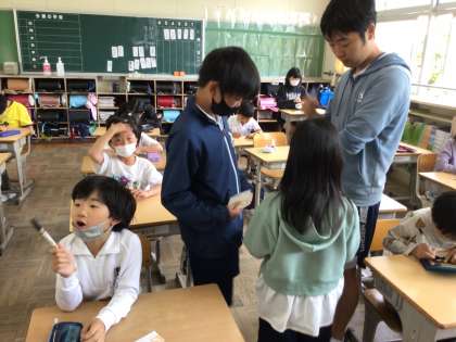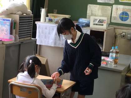 1年生が困っていると、6年生が教えてあげたりお世話をしたりしていました。