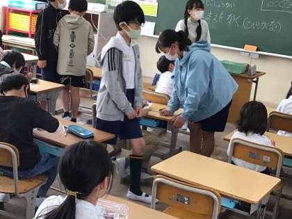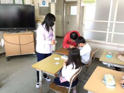 1年生が困っていると、6年生が教えてあげたりお世話をしたりしていました。