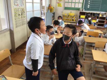 今日は、今年度初めてのふれあい(縦割り班活動)でした。
