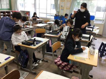 算数で、自分の考え方を伝え合ったり、集中して書写哉習字に取り組んだり、理科の実験や音楽で歌を歌ったりしています。