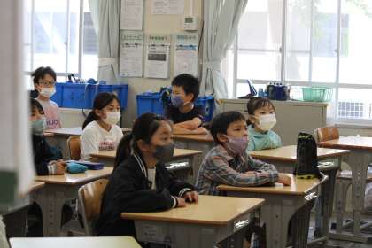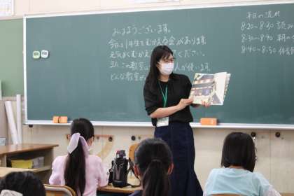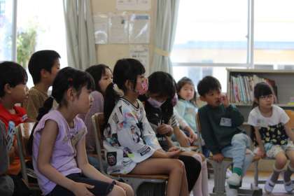ねぎぼうずの方たちは、季節や学年に合わせたお話を選んで、読み聞かせをしてくださっています。子どもたちは、真剣に聞き入っていました。