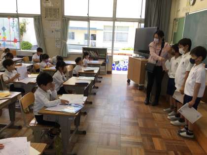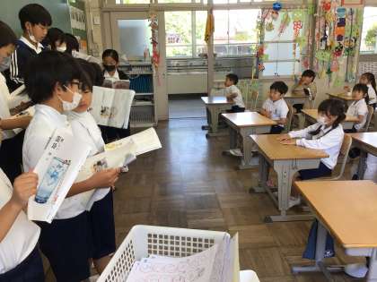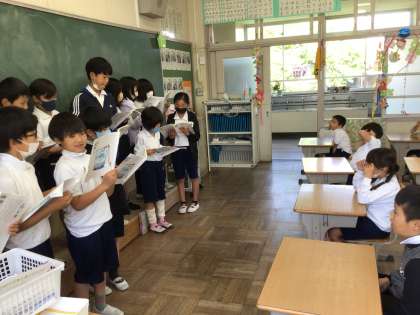 宿題で一生懸命に音読を練習したので、誰かに聞かせたいと考え、1年生の教室に発表に行きました。