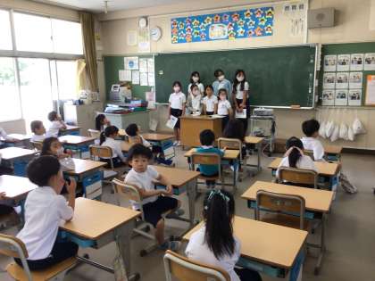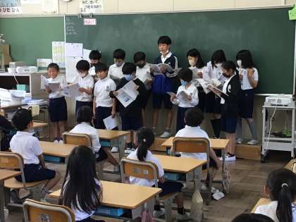 宿題で一生懸命に音読を練習したので、誰かに聞かせたいと考え、1年生の教室に発表に行きました。