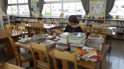 今日は、環境サポーターの方々が学校の花壇の手入れを、図書サポーターの方々が、ほんの整備をしてくださいました。