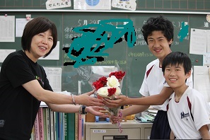 毎年。5月になると、根川小学校の卒業生で豊南中学校に通っている生徒が、学校で栽培されたバラの花束を持ってきてくれます。