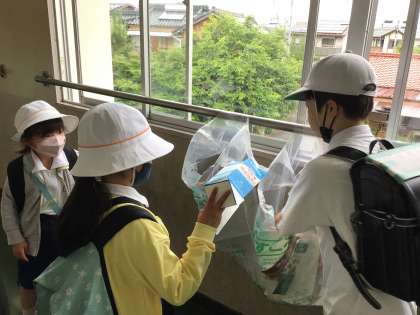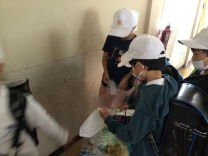環境委員が、リサイクル活動の一環として、牛乳パック集めをしました。