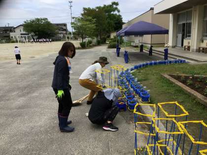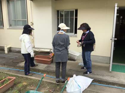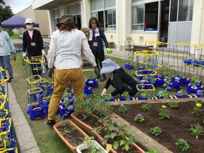 環境サポーターの皆さんが、学校の花壇にお花を植えてくださいました。朝から、土をほぐしたり、お花を植えたりとたくさんの作業をしていました。