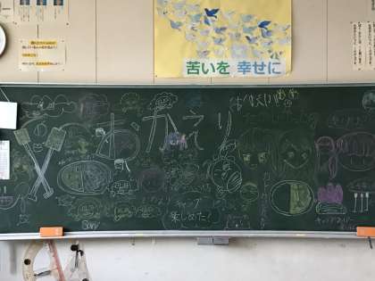 今日、5年生が登校すると、黒板には「お帰りなさい」と書かれていました。