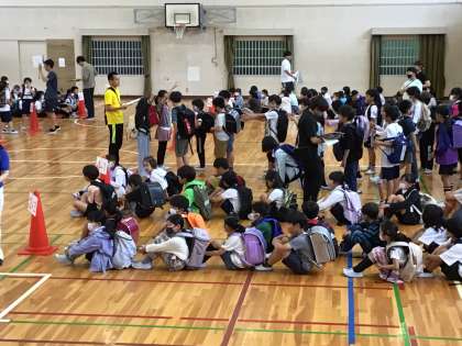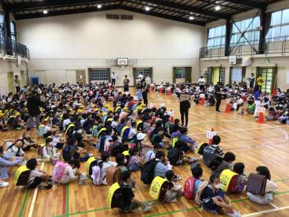 根川小学校では「レベル3 高齢者等避難指示」が発出されましたら、児童は指定避難所の朝日丘中学校まで、教師の引率で移動します。