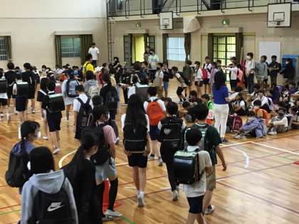 状況を見て、早めに保護者の皆様にお迎えに来ていただき、引き渡しをする予定です。(気象状況により連絡時間は異なります)きずなネットにご注意ください。
