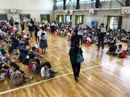 根川小学校では「レベル3 高齢者等避難指示」が発出されましたら、児童は指定避難所の朝日丘中学校まで、教師の引率で移動します。