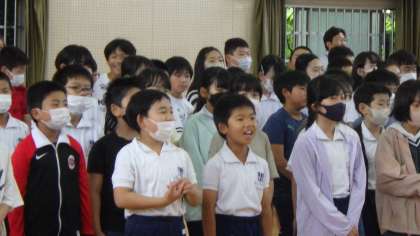 今朝、児童朝会を行いました。