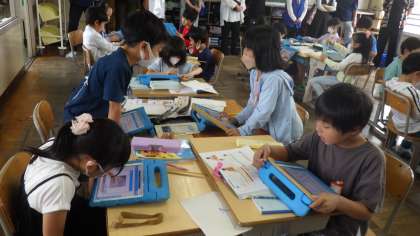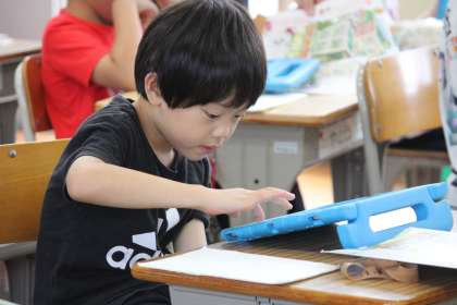 学習用タブレットを使って、学びを深めています。
