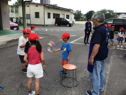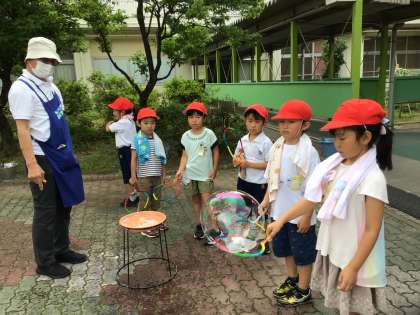 大きなシャボン玉や、長いシャボン玉、たくさんのシャボン玉ができて、子どもたちは大喜びでした。
