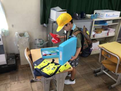 今年は、通学団での登校ではなく、1日のうちで時間を決めて保護者の方とともに登校しました。