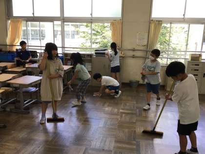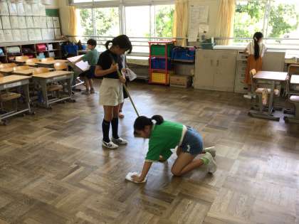 学校をきれいにし、気持ちもピカピカになるように、頑張って掃除をしました。
