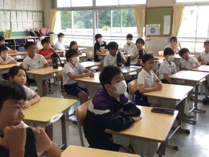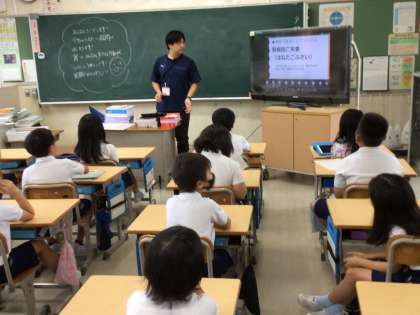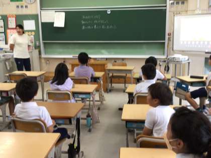 朝のスピーチを行っているクラスがありました。「夏休みに楽しかったこと」を、順番に話しています。