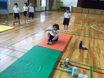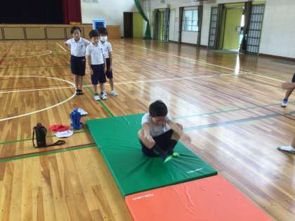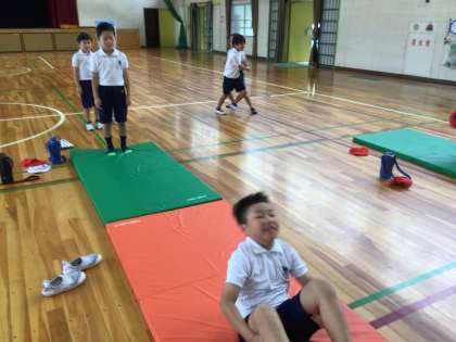 3年生のマット運動では、前転に挑戦しています。「しりもちをつかないように」「ひざをつけて」「手をつかないように」頑張っています。1年生の図工では、紙をランダムにちぎった形から想像して、作品を作っています。「海の中の生き物だよ」「お料理しているところ」など、自分の世界を描いています。5年生は、国語の学習でアンケートを取るために、フォームの作成に挑戦しています。2年生は生活科で、地域のことを勉強しています。