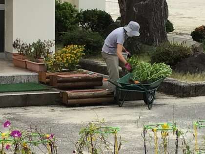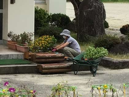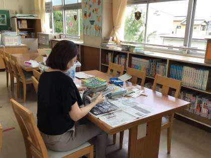 今日は、環境ボランティアの方が、草取りをしてくださいました。また、図書室では、破れてしまった本の修理をしてくださいました。