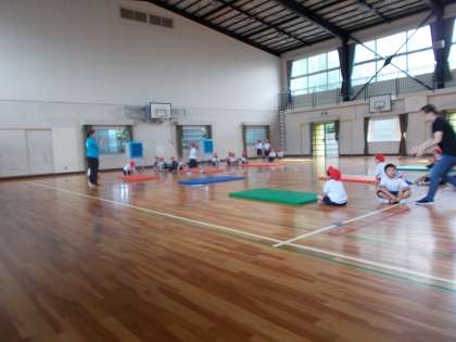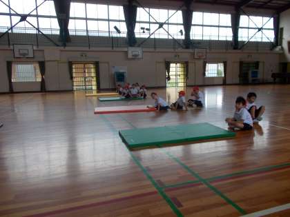 「上手に前回りができたよ」「今度は、後ろ周りをするよ」など、頑張っています。