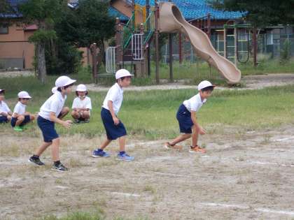 2年生が、体育の時間に運動会の徒競走の競技に向けて、練習をしました。