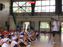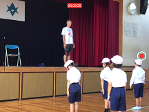 3年生が、元オリンピック選手(400mリレー)の青戸慎司さんによる走り方教室を行いました。