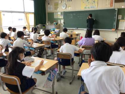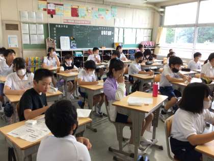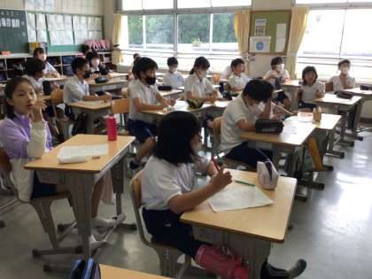 5年生のクラスでは、昨日の宿題の算数プリントの答え合わせをしていました。