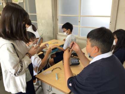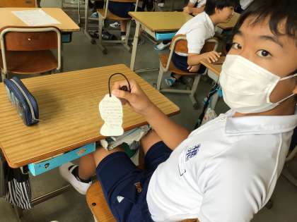 学校に残る5年生が5年生が無事に行ってこれるように、気持ちを込めて「お守り」を作りました。大仏の絵の裏に、たくさんのメッセージを書いていました。