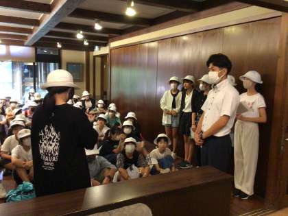 旅館で出発式を行いました。