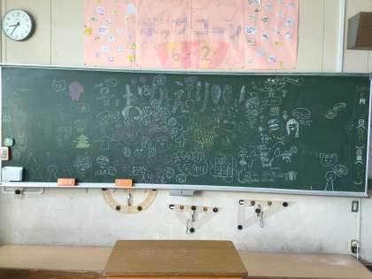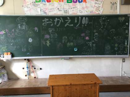 5年生は、教室の黒板にお帰りメッセージを書いてくれました。