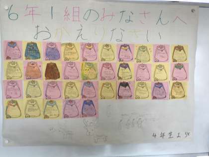 6年生が修学旅行から帰ってくるのに合わせて、下級生がお迎えの準備してくれました。