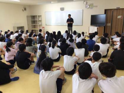 修学旅行を終えた6年生は、朝、学年集会を行いました。