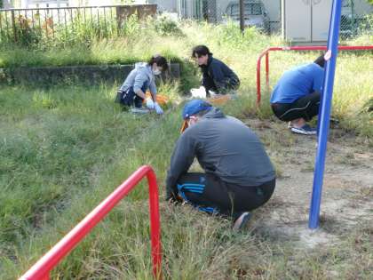 運動場の草取り、溝そうじ、窓ふきなど、普段そうじできないところを掃除してくださいました。とてもきれいになりました。ありがとうございました。