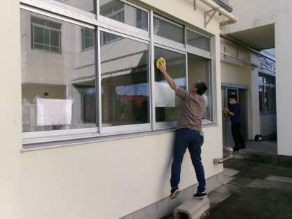 運動場の草取り、溝そうじ、窓ふきなど、普段そうじできないところを掃除してくださいました。とてもきれいになりました。ありがとうございました。