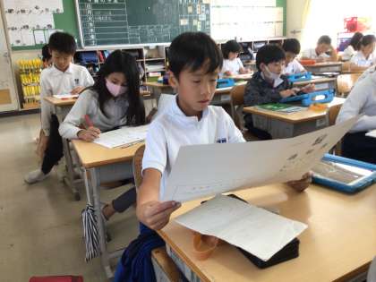 子ども達は、担任の先生から声をかけてもらいながら、通知表をもらいました。