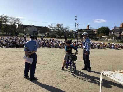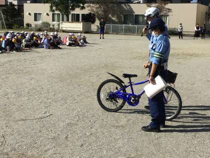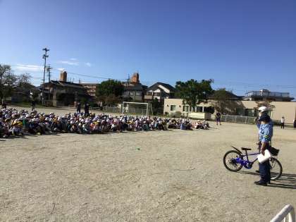 今日は、愛知県警の方が来て、自転車に関する交通安全指導を行なってくださいました。