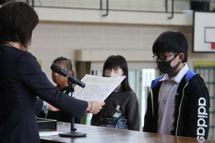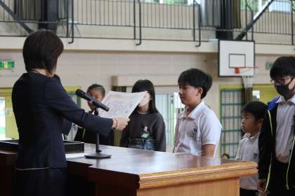 始めに、後期委員会の委員長や、学級代表の任命式を行いました。
