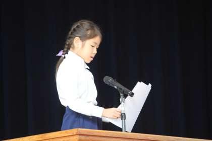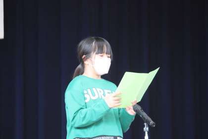 次に、代表児童4名が、前期の振り返りと後期の意気込みを話しました。
