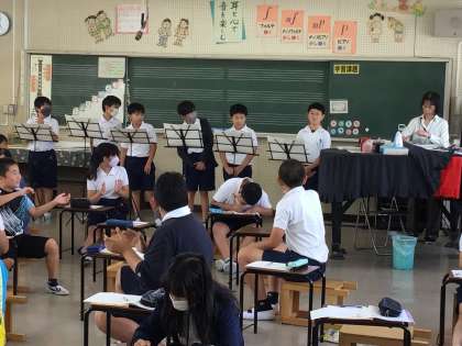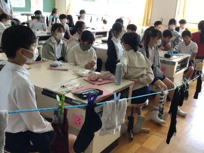 音楽の授業で、歌を歌ったり、6年生の家庭科では洗濯の学習をしたりしています。